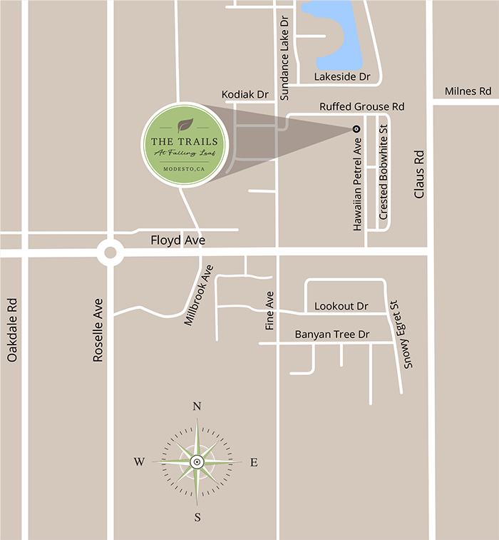 Located in Modesto’s Village One neighborhood, The Trails at Falling Leaf is a 59-home community that’s an excellent addition to a thriving city. The Trails offers beautiful, two-story homes with three floorplan designs and up to five bedrooms. Appreciate smartly designed plans and stylish finishes all professionally selected with you in mind. Village One is part of a longstanding new home area that boasts the Sylvan School District and convenient access to retail shopping. It’s just a quick drive to vibrant downtown Modesto, where you’ll discover a buzzing, lively city full of community events, dining, and unique shopping.