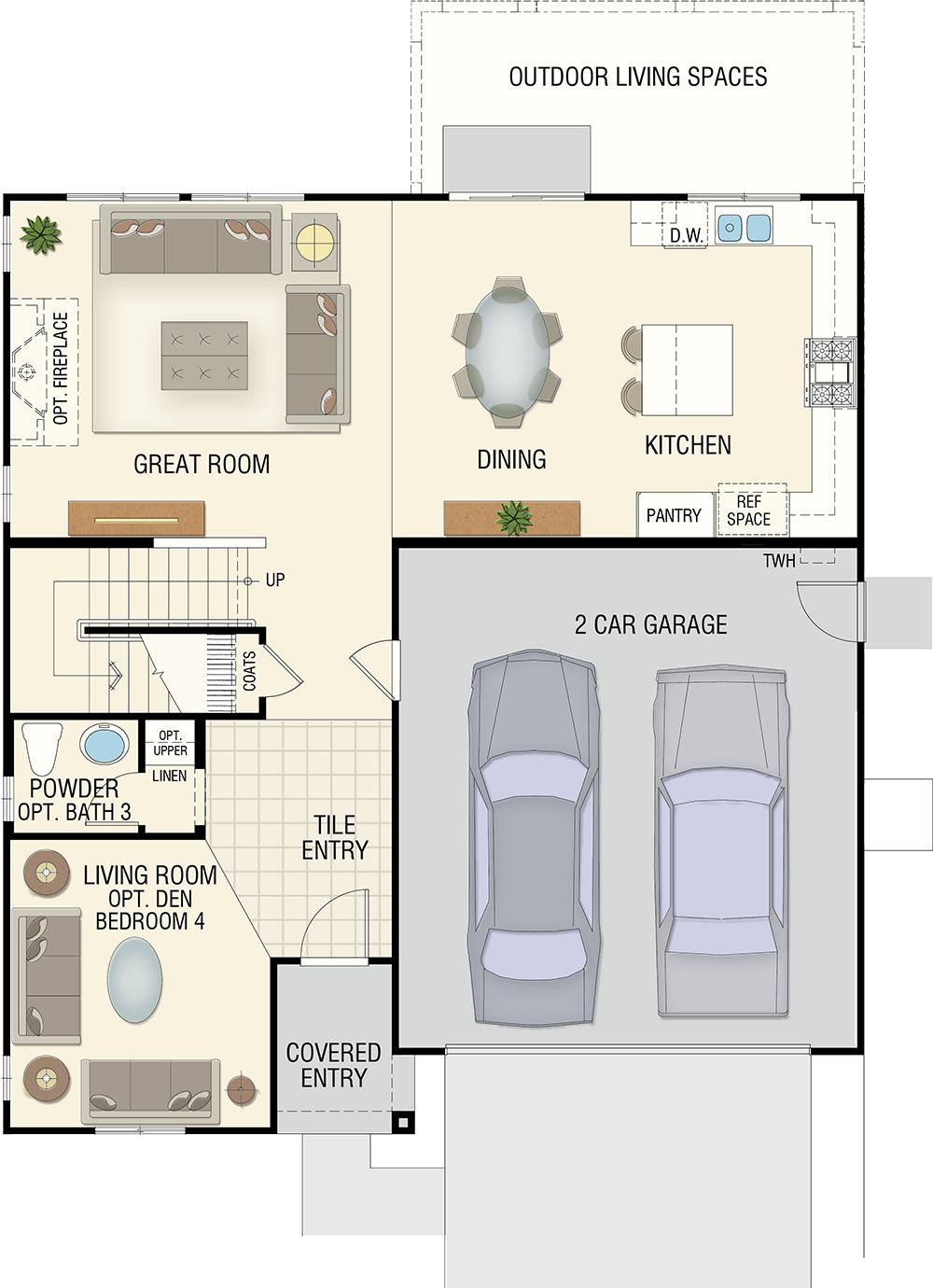 All information is subject to change and Florsheim Homes reserves the right to make modifications to elevations, floorplans and features without notice. Elevations and floorplans are artist’s conceptual drawings. Square footages are approximate. Windows, porches and room configurations vary per plan and elevation.