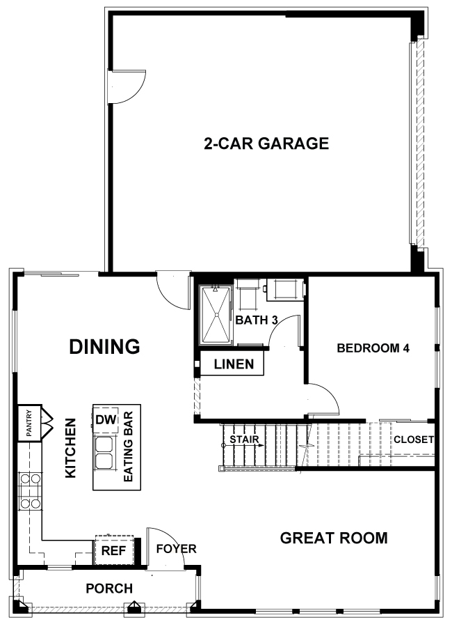 - Spacious island with eating bar (per plan)