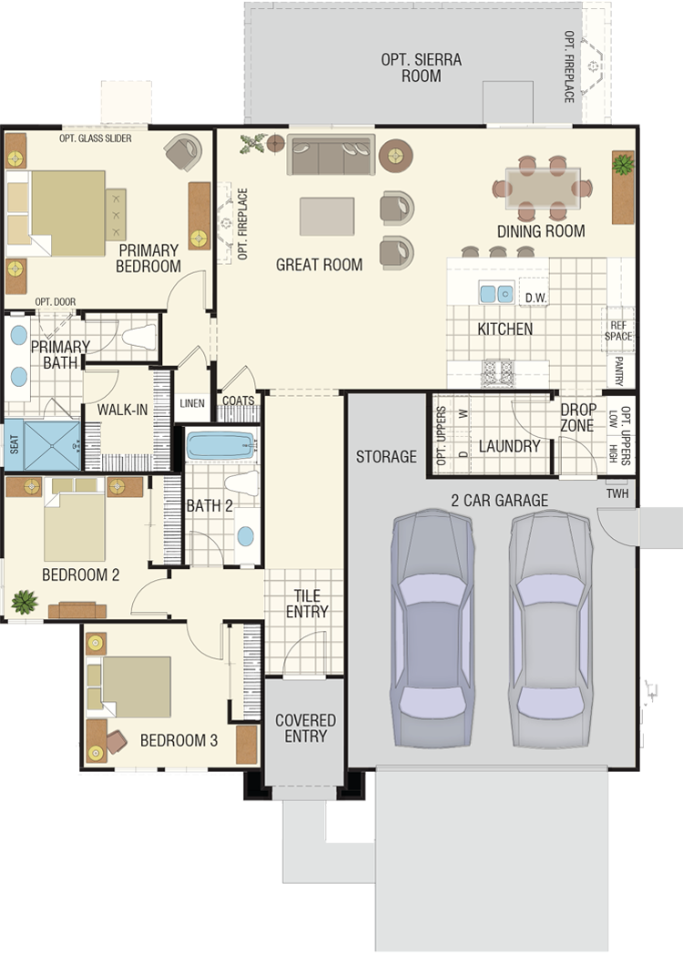 - Innovative floorplans with state-of-art spaces including optional Sierra Rooms, Lofts, Dens, and Decks (per plan)