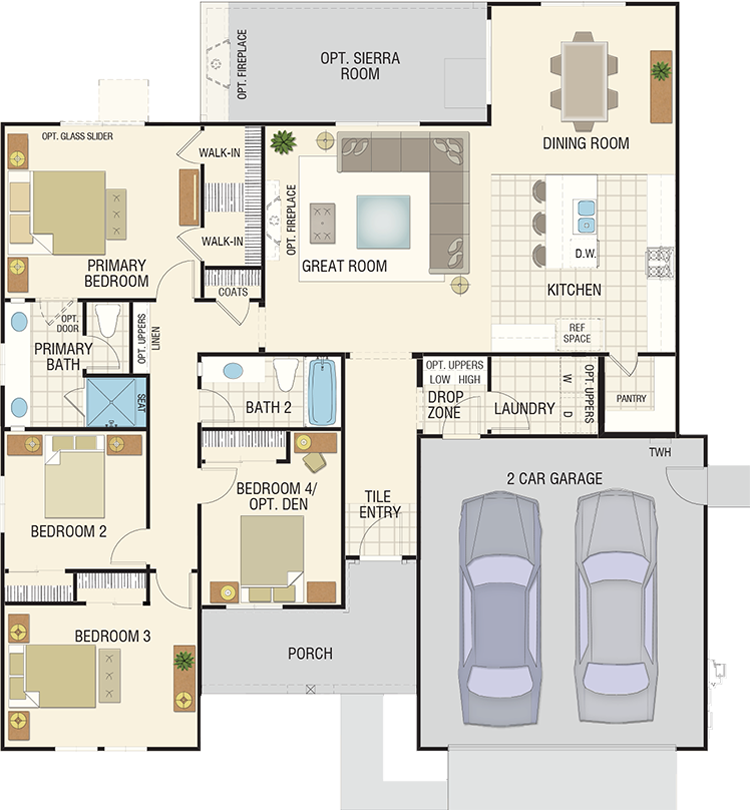 - Innovative floorplans with state-of-art spaces including optional Sierra Rooms, Lofts, Dens, and Decks (per plan)